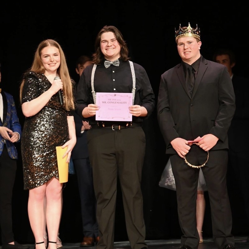 First Runner Up Brendan Spurgeon, shown here with co-host Becca Brown and 2022 Mr. PHS Jon Baker, also received awards as Best Dancer and Mr. Congeniality.