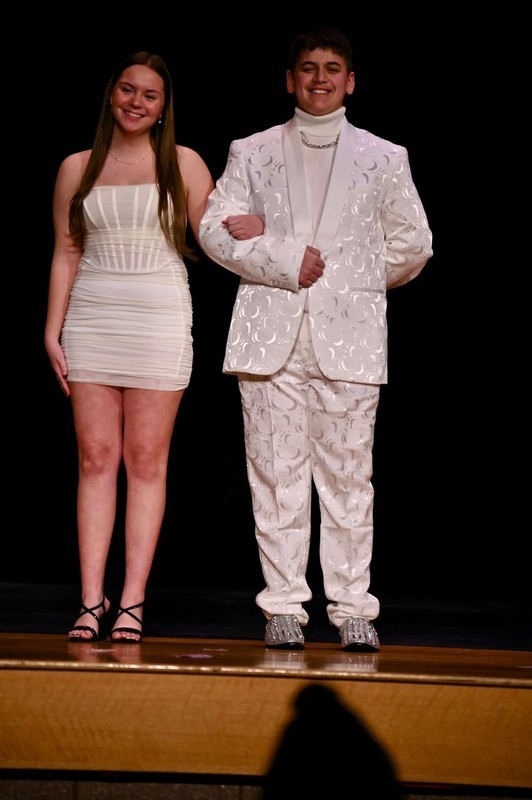 Senior AJ Mulcahy and his attendant Paige Moore during the Formal Wear category.