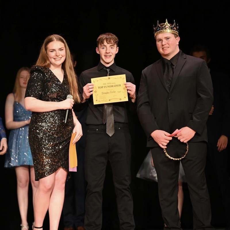 Co-chair Becca Brown and 2022 Mr. PHS Jon Baker hosted the event. Throughout the night, judges and audience members were treated to a grand march, a choreographed dance, a dash for cash, and a lot of smiles and laughter. The twelve contestants began fundraising the week of the event, and on the night of the pageant, competed in the categories of formal wear, outfit of choice, talent, fundraising, and question. At the end of the night, awards were given and the top two contestants were announced, leading to the crowning of senior Sam Frank as the 2023 Mr. PHS.