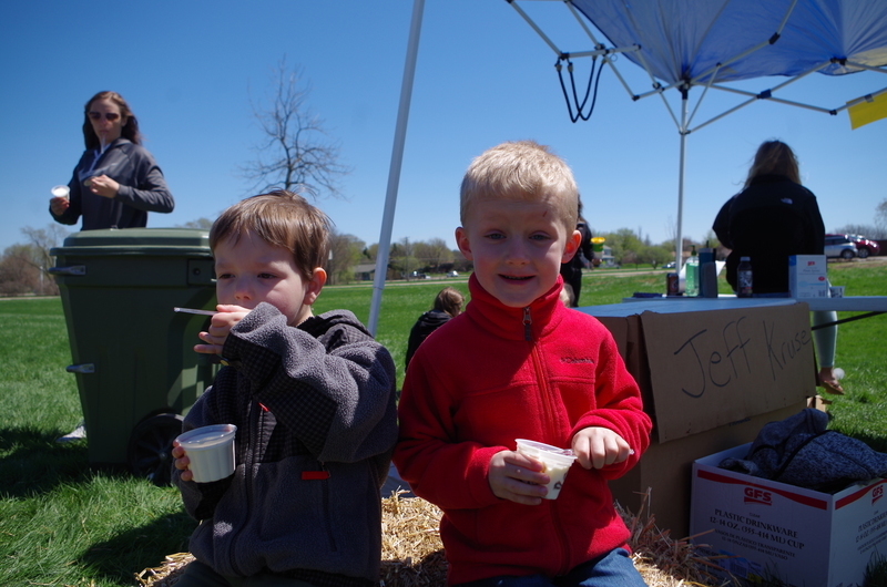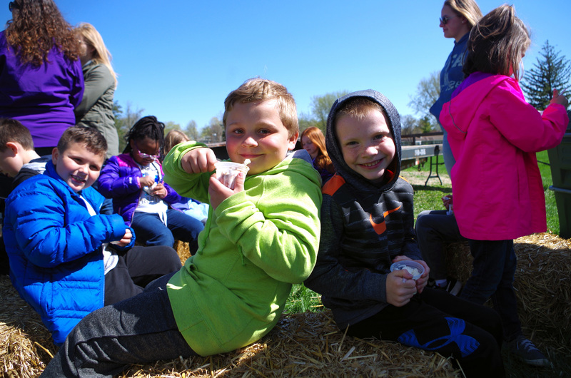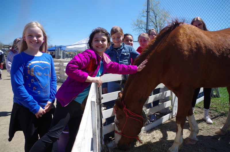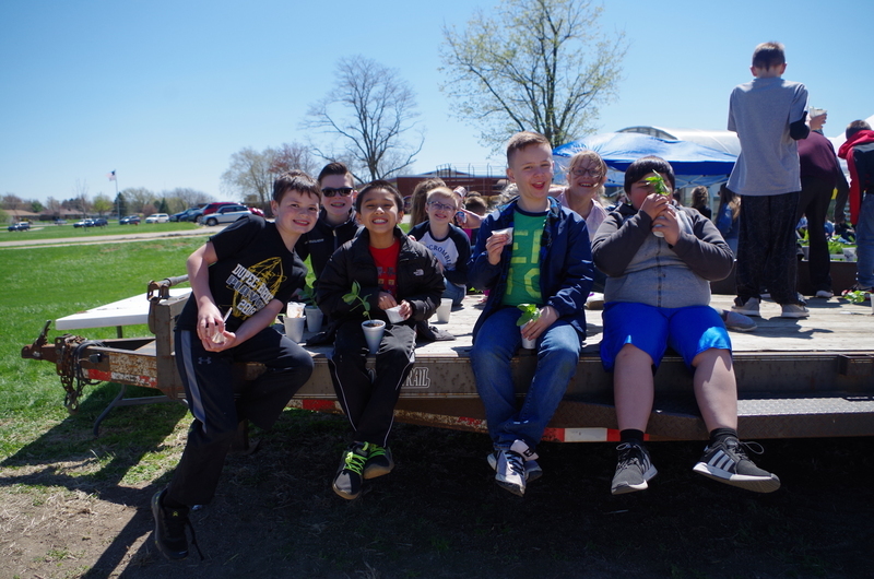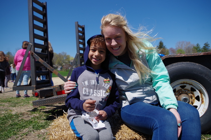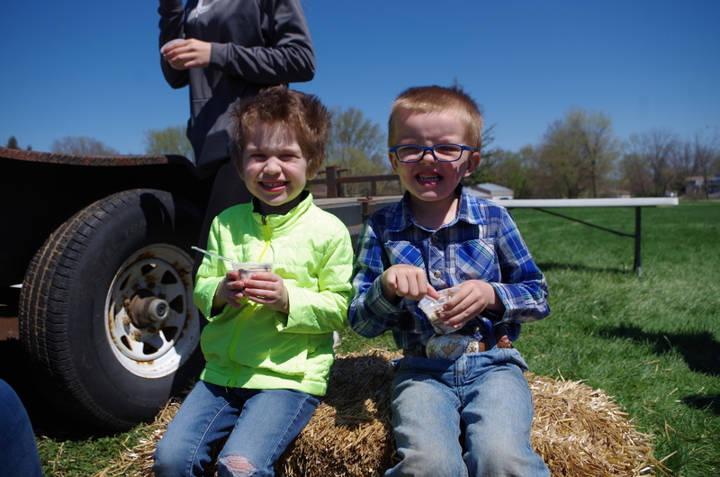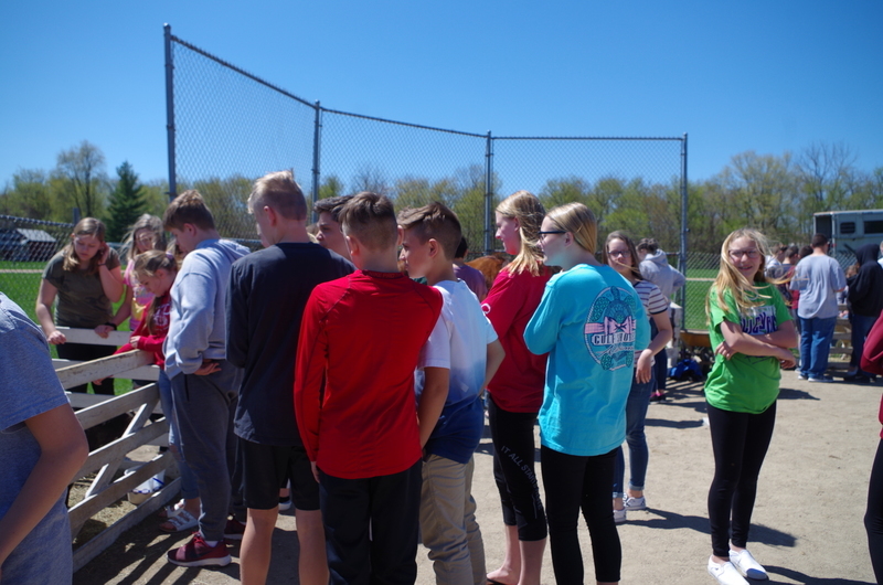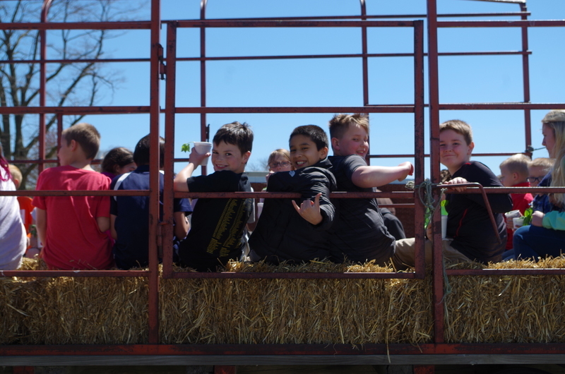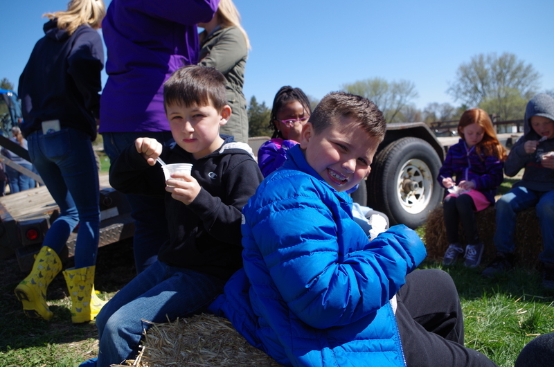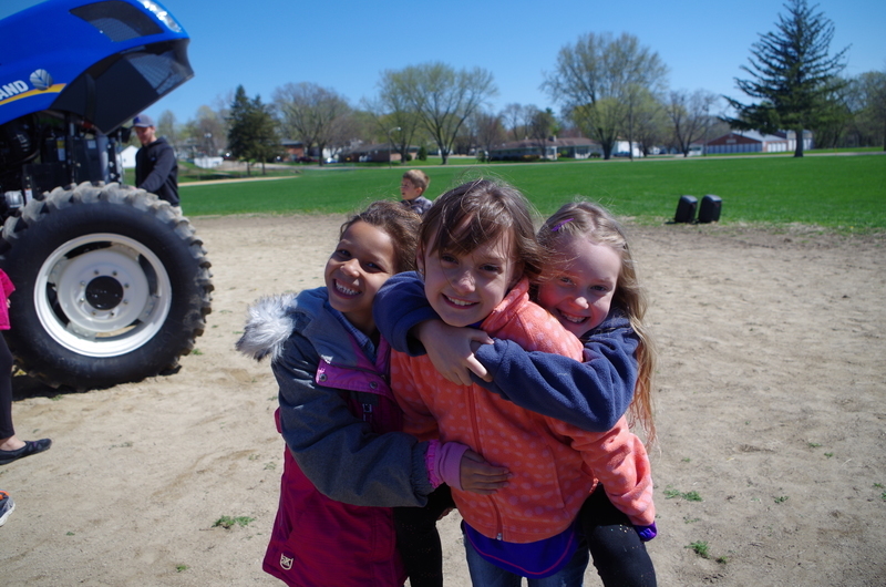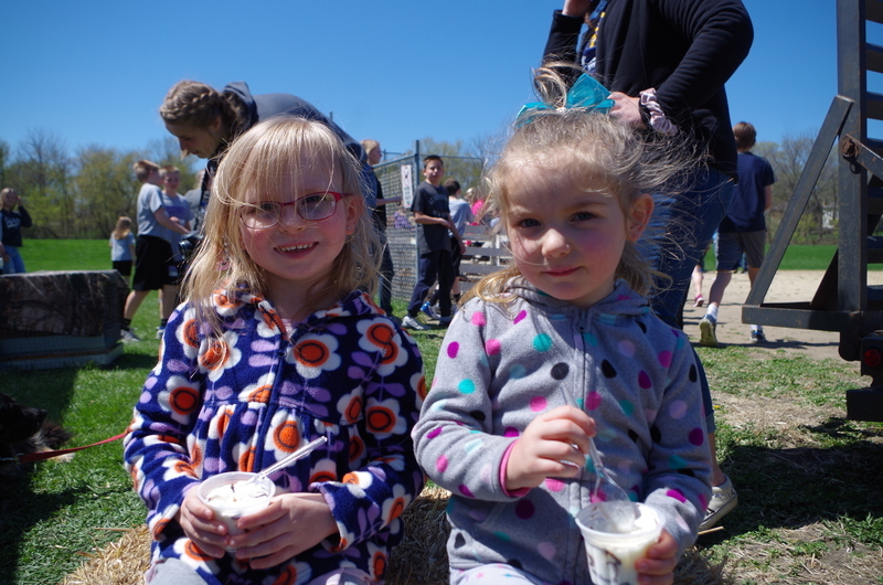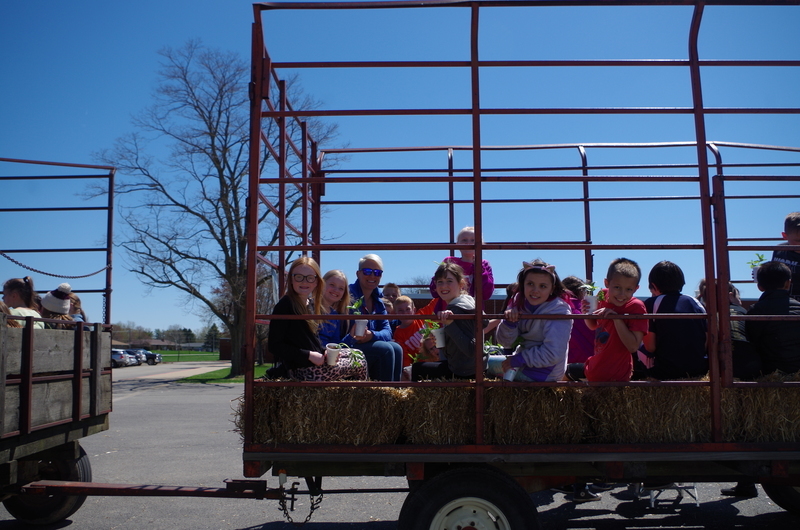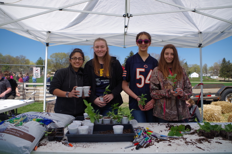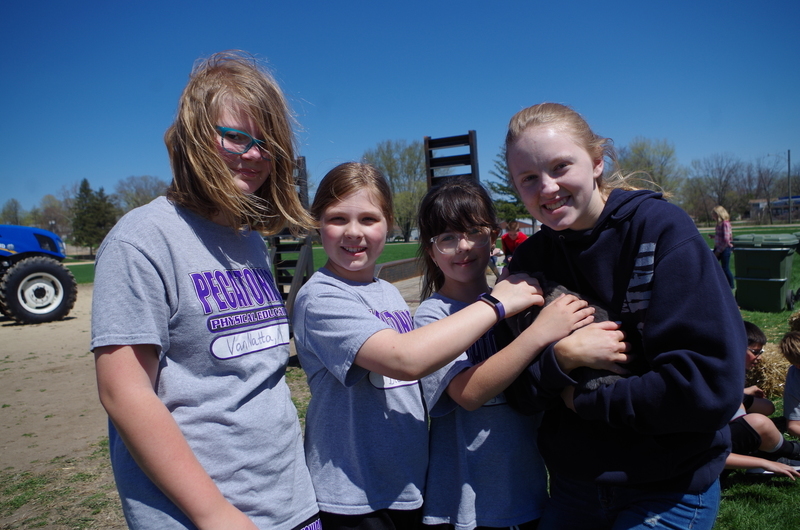 The Pecatonica High School FFA hosted a “Petting Zoo” Thursday, April 25, 2019. The FFA students setup a petting zoo on the middle school property next to the FFA Greenhouse and brought in Jazzy bunny and Jinx, the flop eared bunny, a German Shepard mix named Maddie, pigeons, chickens and roosters, goats, Dodger the horse, a five week old lamb and two one week old calves. There was a big beautiful blue tractor with a shiny red hay baler attached to it provide by Peabudy’s North Farming Equipment for students to explore and have their pictures taken in or around. There were hay wagons with hay bales placed for students to sit and enjoy the 450 cups of ice cream donated by Prairie Farms. The kids loved seeing and interacting with the cute animals. A tent was set up for students to plant seedlings to take home and plant courtesy of the FFA Greenhouse. Our FFA adviser and Agriculture Teacher, Brenden Schultz, provide and drove a double hay wagon to and from the elementary school building to pick up and deliver students. Barb and Mark Klinger provided the trailer and the calves, the Larsons provided hay, and Jeff Clark provided the hay racks. The FFA students were rock stars and the children’s smiles were as bright as the sun.