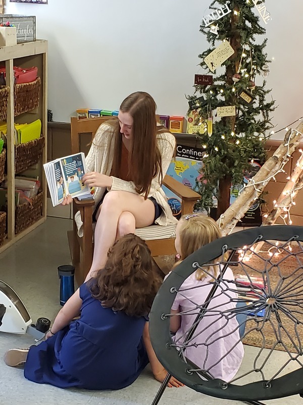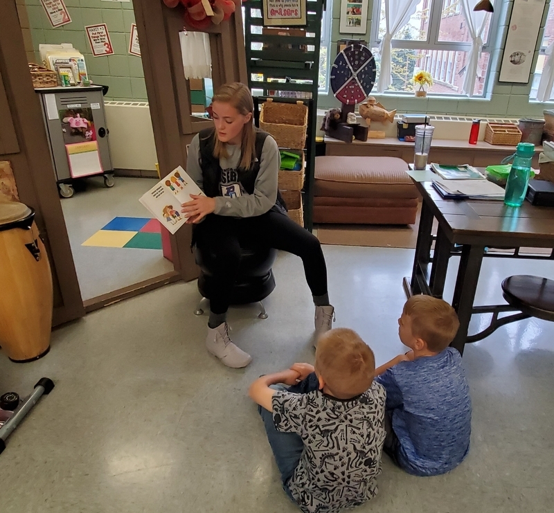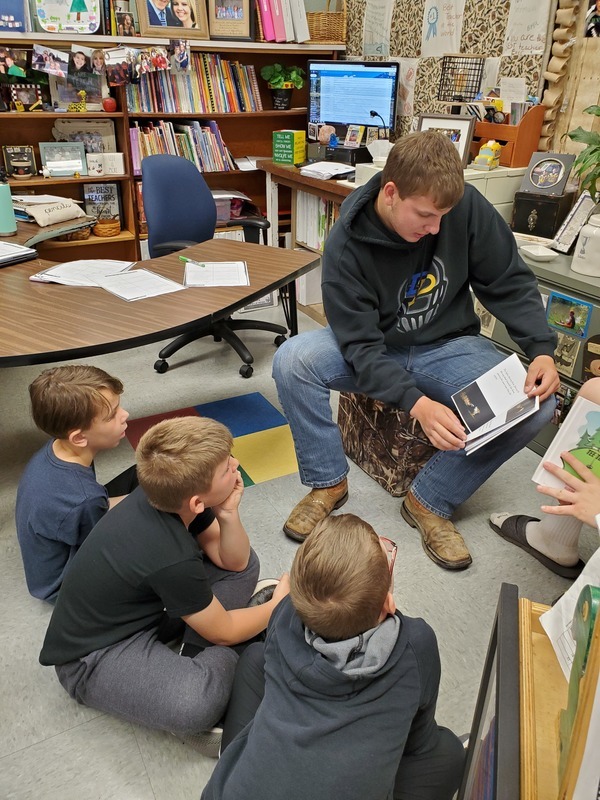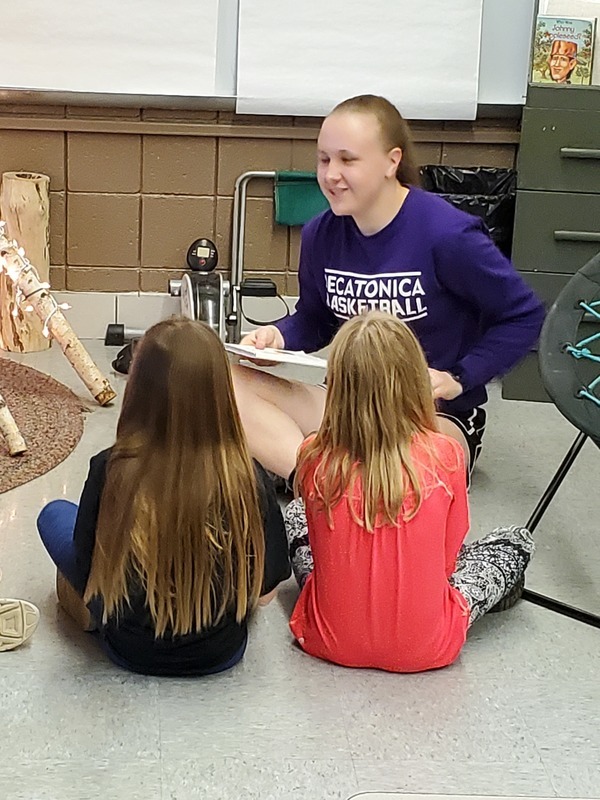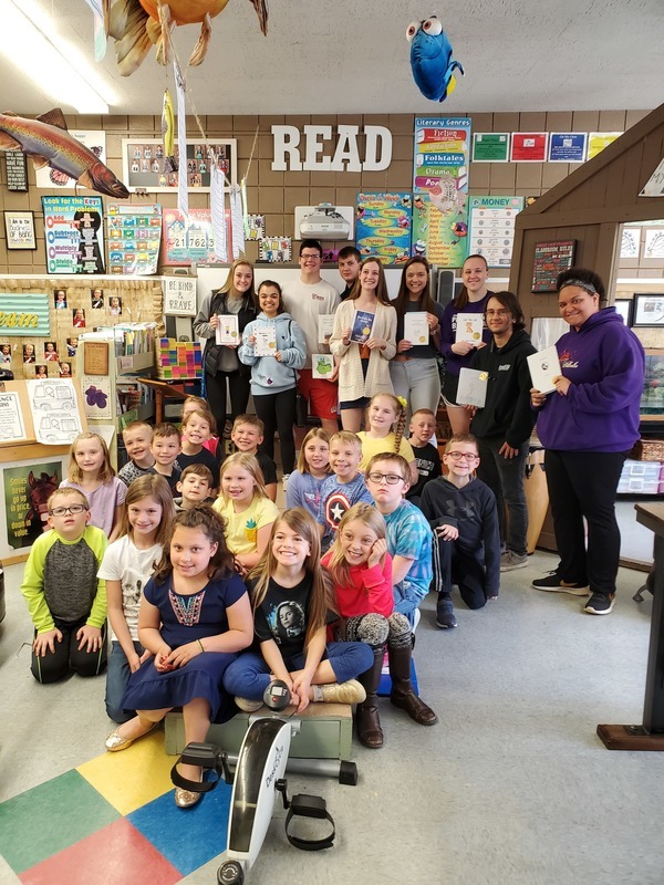 The Creative Writing students reading their Children's story (which they wrote) to the 1st and 2nd graders at PES. They did a really nice job! Thank you for the photos Mrs. White.
