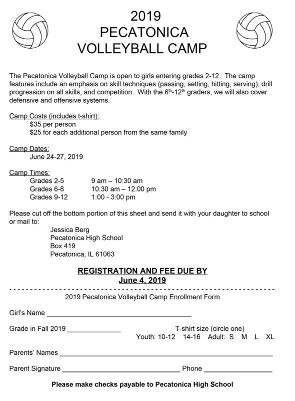 Pecatonica High School Volleyball Camp Forms For Grades 2-12. Camp will be held at the High School! Get your forms in!