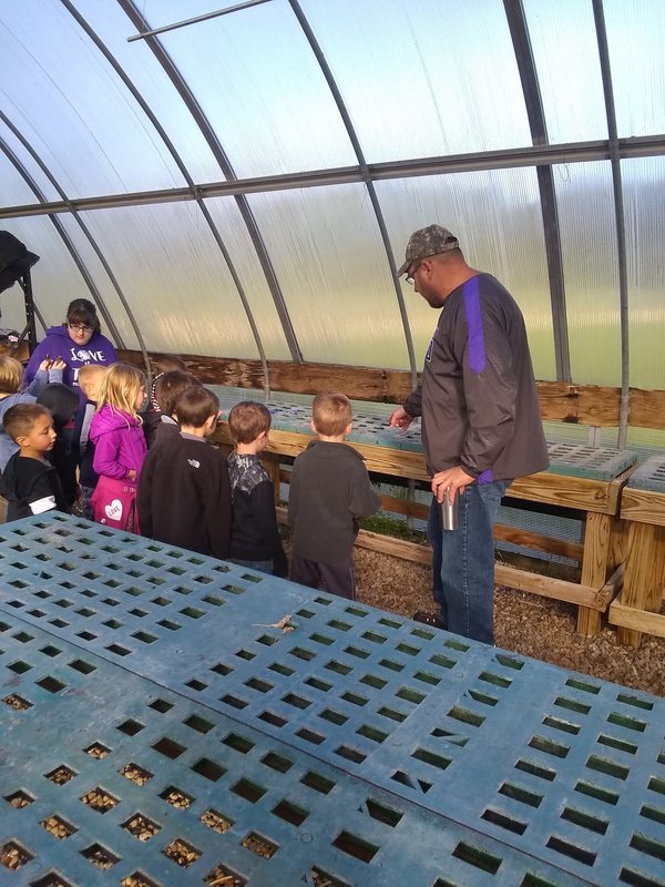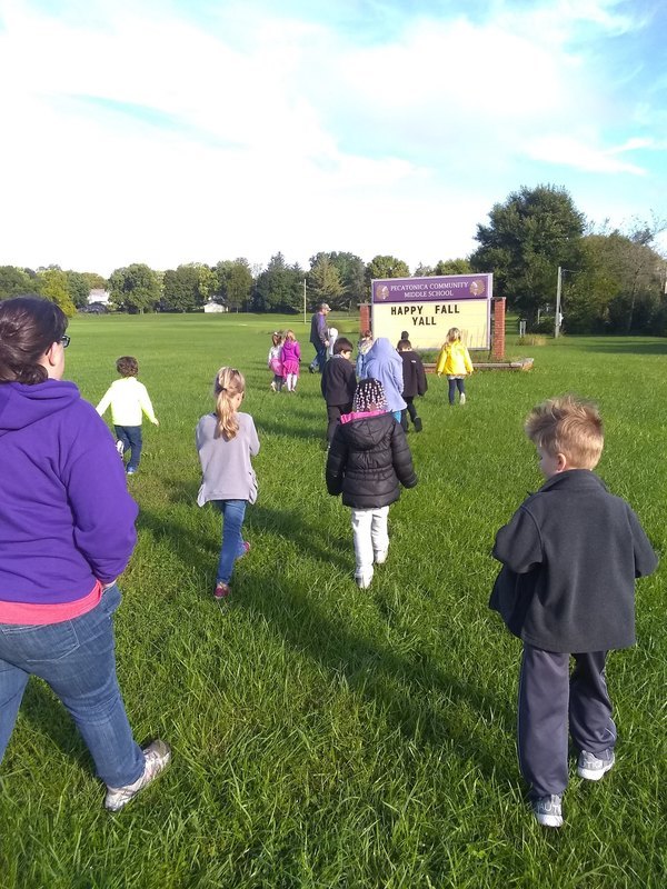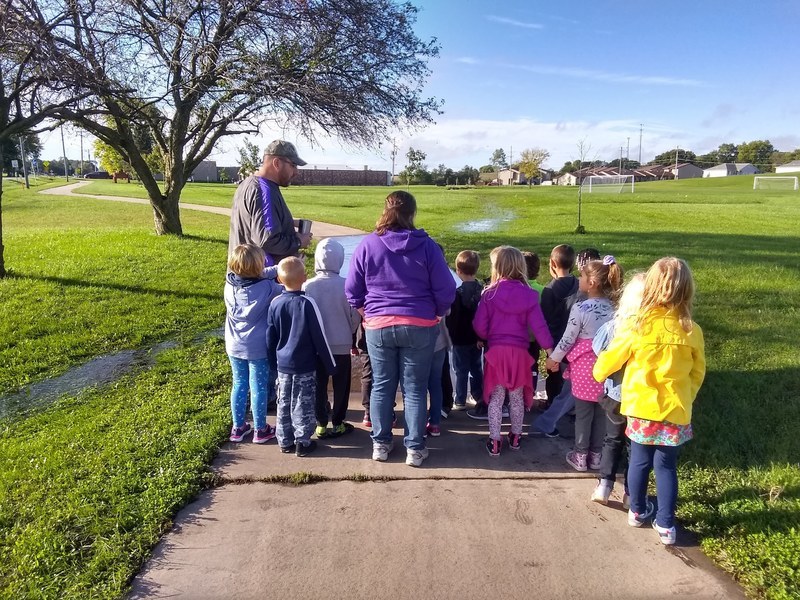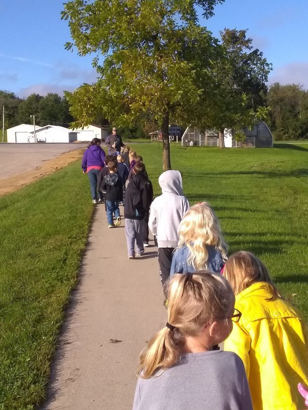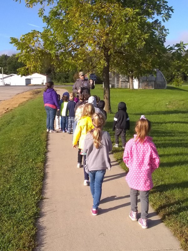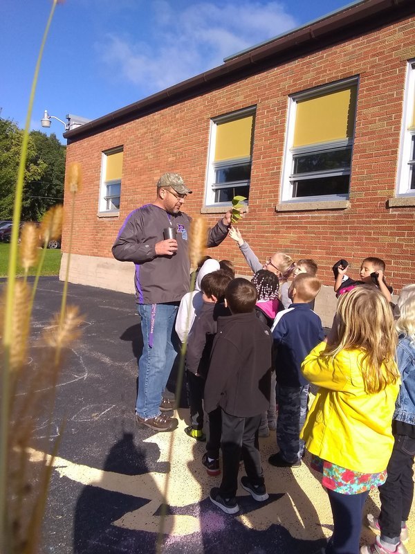 Mrs. Dulaney's Kindergarten class took a "Fall Walk" led by our Superintendent, Bill Faller. They walked the district property and explored the signs of Fall.