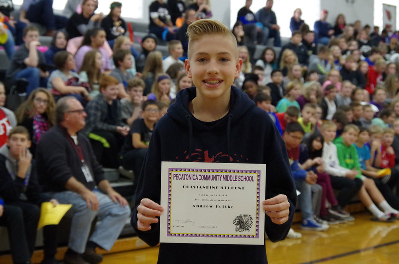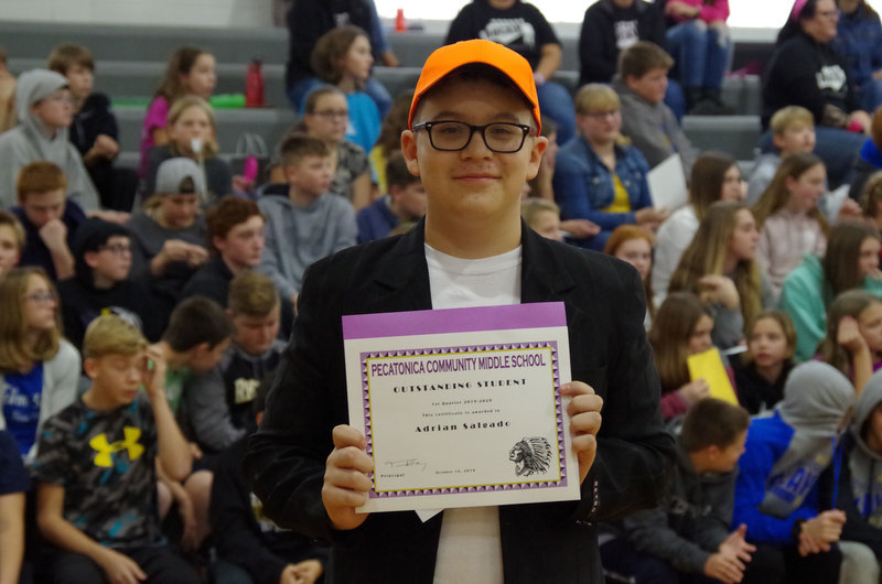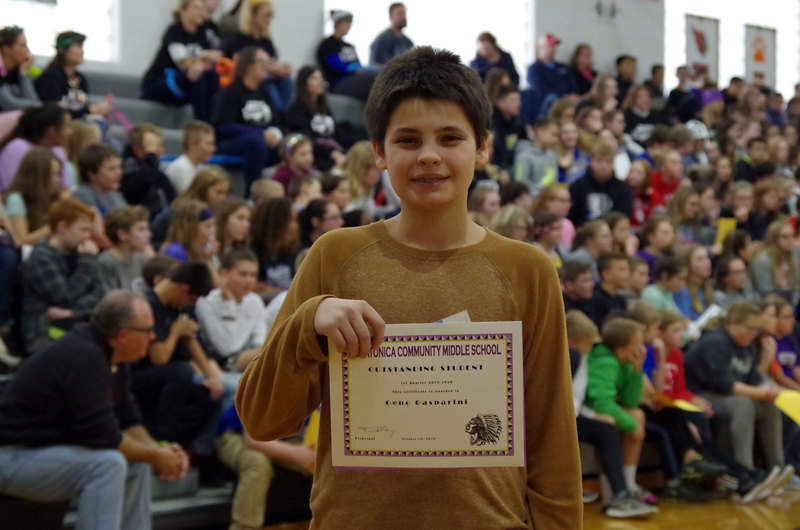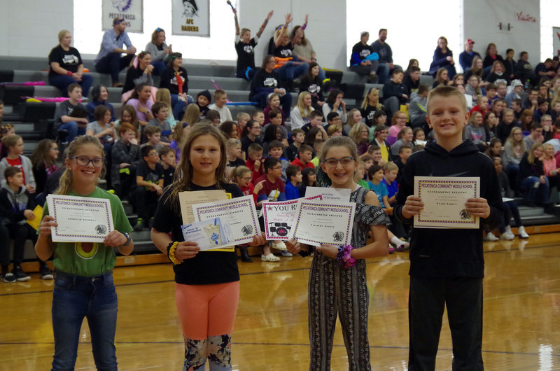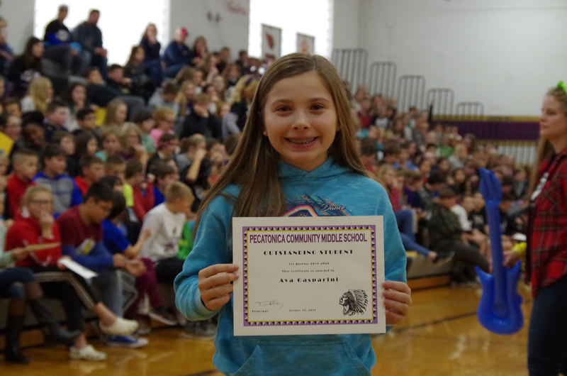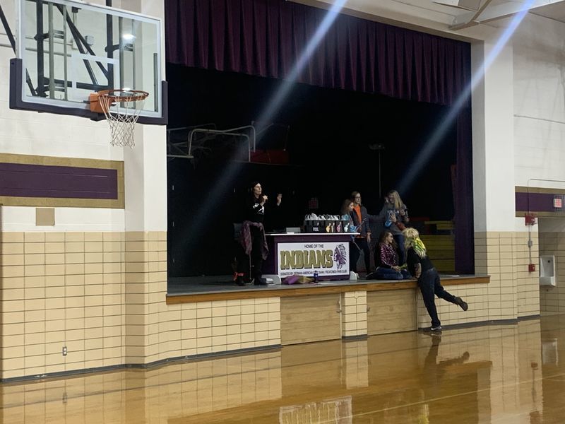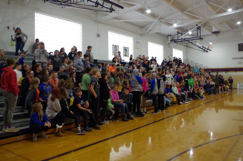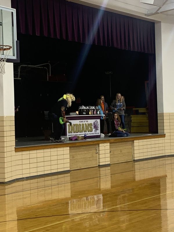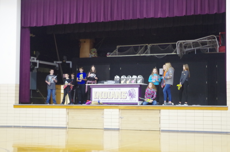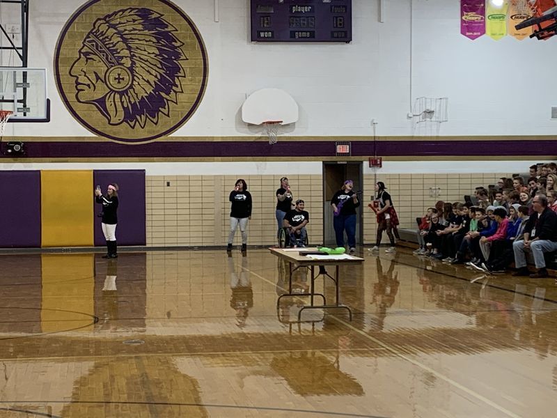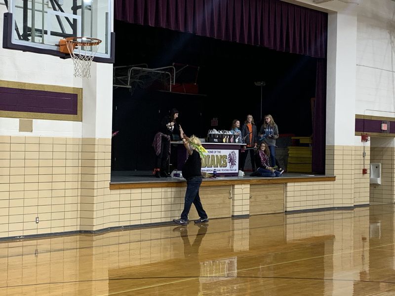 Rockstar Principal Tim King celebrates Superior Honor Roll Students by Rockin' Out at the 1st Quarter Awards Assembly. Staff dressed up as rock stars for the assembly and Principal Tim King jumped off stage and the student body went wild as he played his air guitar. Then Principal King high-fived the 10 Superior Honor Roll Students as they made their way across the stage!