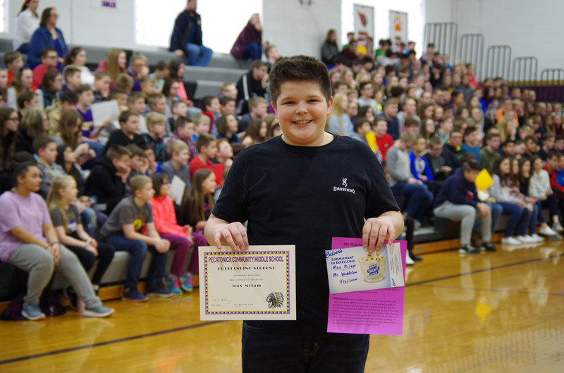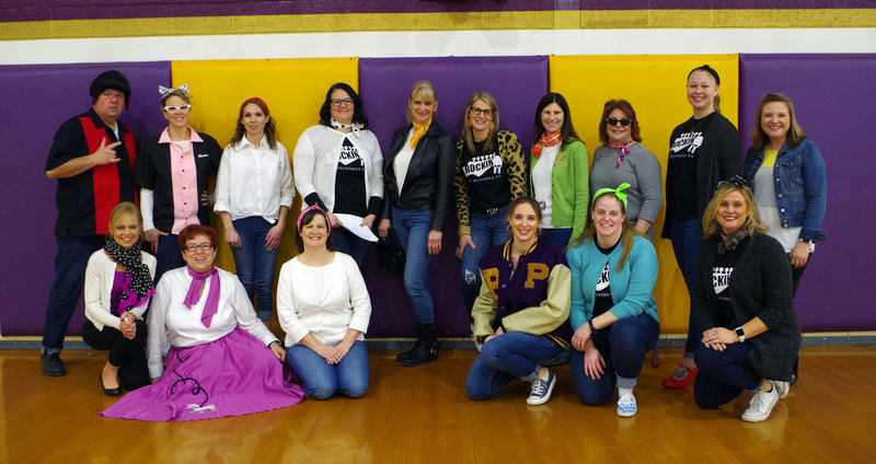 2nd Quarter Middle School Awards Assembly - The middle school rocked their 2nd Quarter Awards Assembly, Thursday, January 15, 2019. Students were recognized for Academic Honors and presented with certificates such as AR winners, Boys Basketball, A Honors Roll, Superior Honor Roll, Student of the Quarter, and Kindness Awards. Mr. King did a great Elvis impersonation and the Staff dressed in 50s clothes came out doing the jitterbug! Superior Honor Roll Students received a variety of candy that was popular in the 50s like Sugar Babies, the 8th Grade Academic Bowl team was presented with Hoodies as they celebrated their Back to Back Route 72 Conference Championship victory, and the 7th Grade Boys Basketball Team was presented with T-shirts for their Route 72 Conference Championship. The assembly was followed by a Hula Hoop contest. “Thank you, Thank you very much” for making the assembly so fun for students!!!