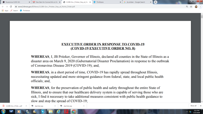 Please Click on the Link Below to Read the Full Executive Order from Governor Pritzker. Thank you.