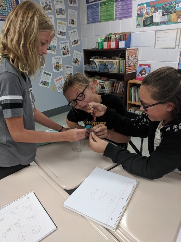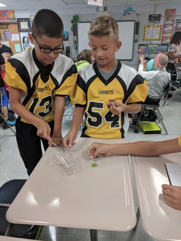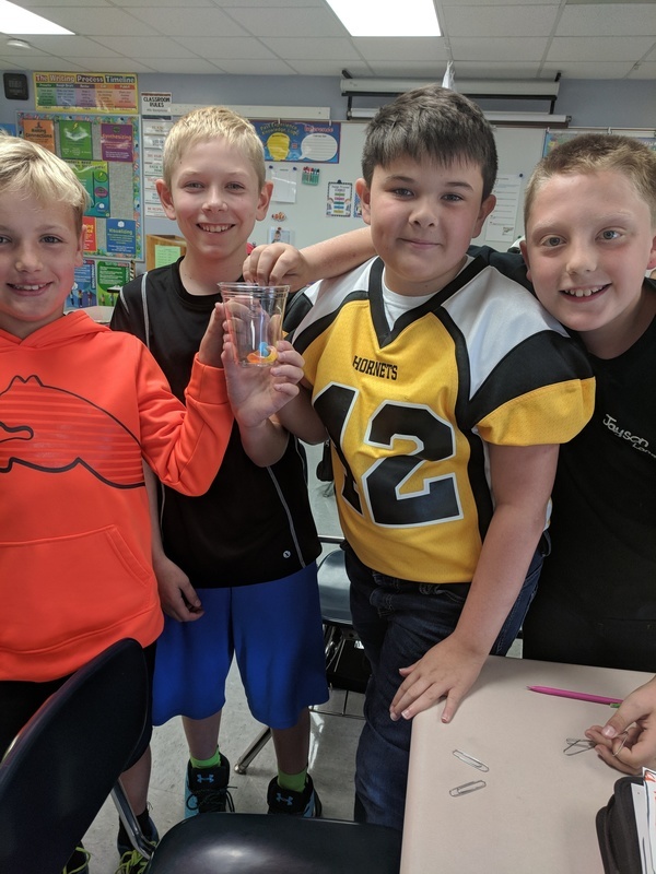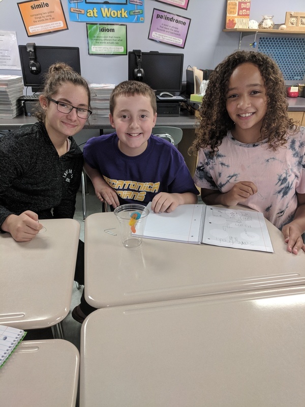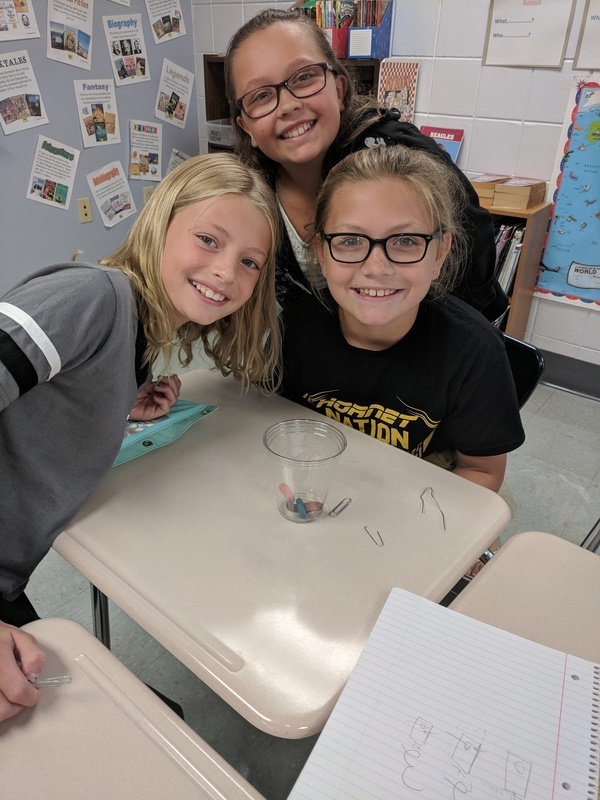 All of the 5th graders did a lab in science to work on creating a plan together, testing it out, making improvements, and reaching the goal. The lab was to save Fred the Gummy worm by putting a Life Saver around his middle and putting him back in the boat by only using four paper clips - No hands! All groups were successful in saving Fred!! They may have used different techniques, but they all found a way to save Fred!! 🐛