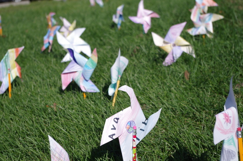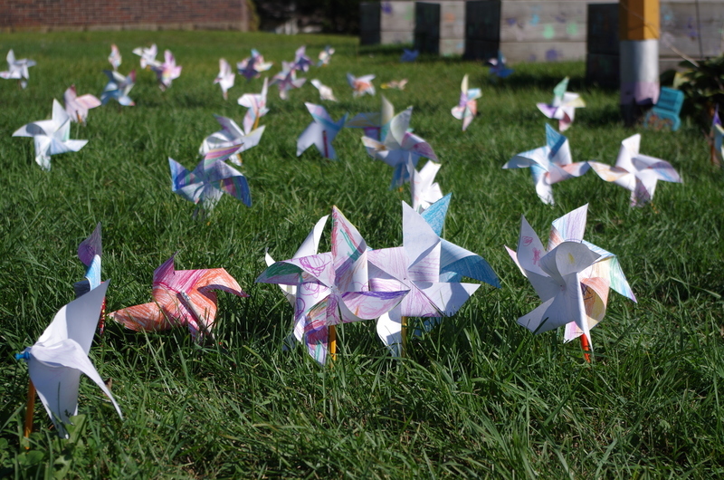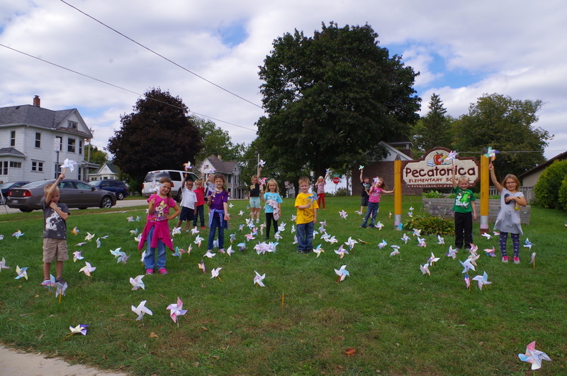 The elementary school honored International Day of Peace (9/21/18) on Monday, September 24, 2018 by “planting” handcrafted pinwheels in the front lawn of the elementary school. The students created the colorful pinwheels during art special for the peaceful event. The pinwheels whirled all day for world peace!