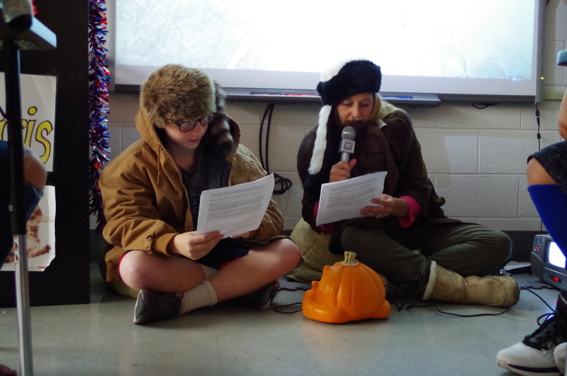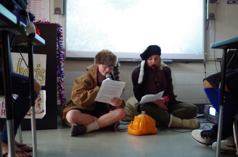 Mrs. Medearis performed a Lewis and Clark Expedition skit in each of her 8th grade Social Studies classes on Tuesday, October 2. The room was cool and dark. The background scene on the smart board was snowy and sounds of wind whirled around the students. Lewis (Mrs. Medearis) and Clark (student) recollected their Expedition from May 1804 to September 1806. The students were then asked to write everything they remembered from the skit. Mrs. Medearis wore a cute mustache and the student’s wore a cool Daniel Boone hat.