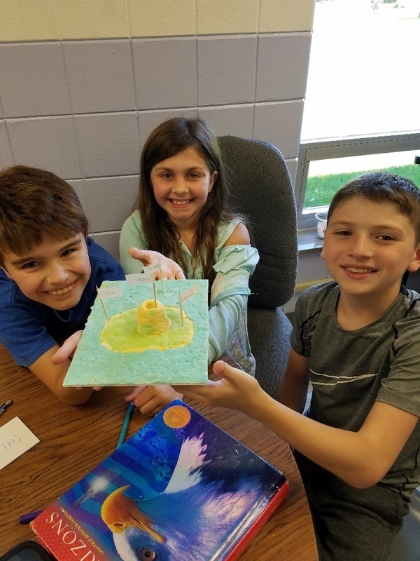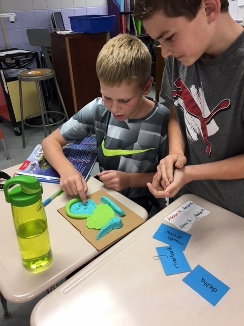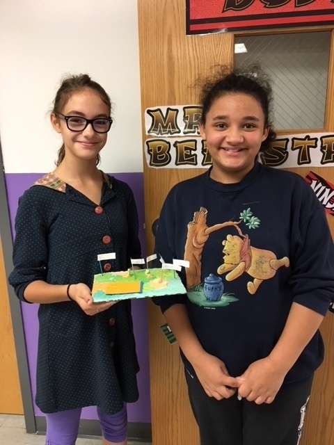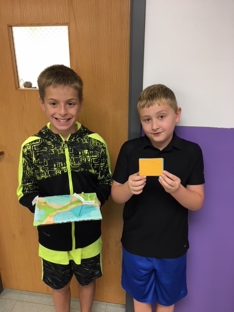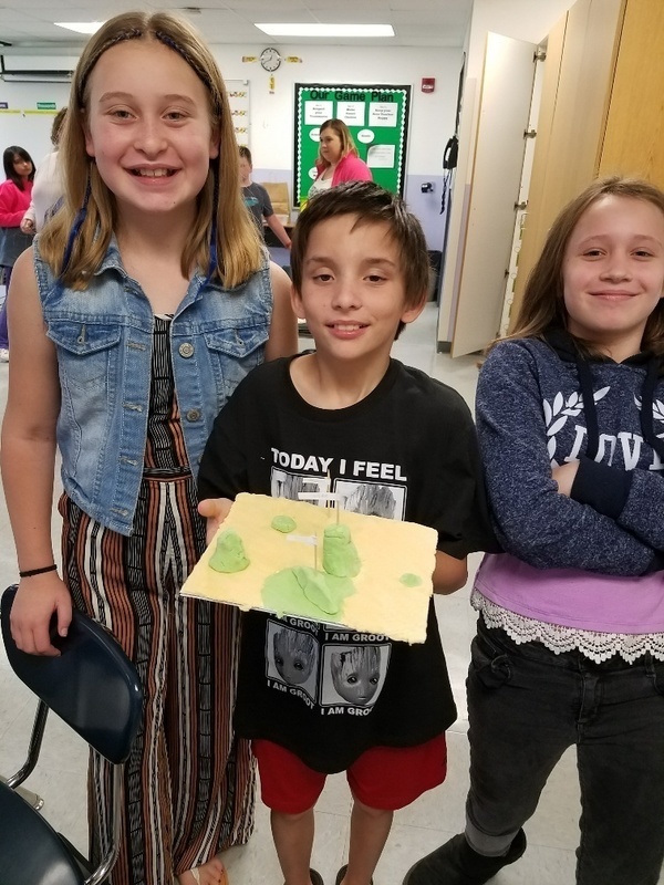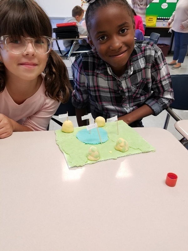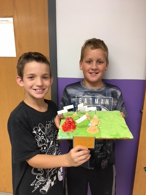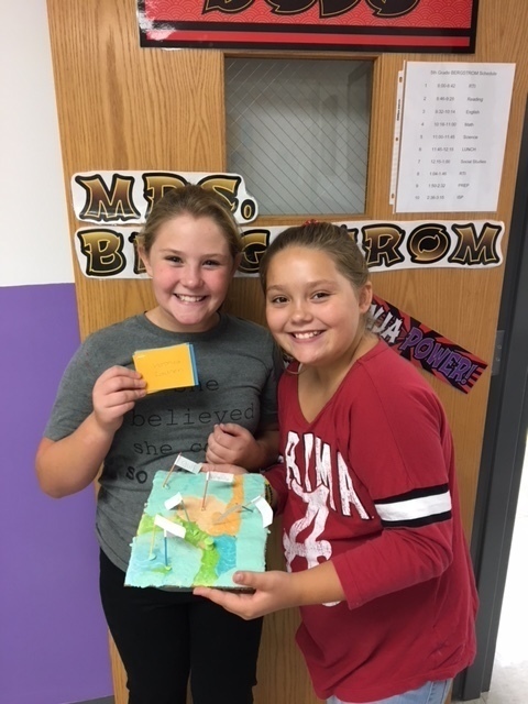Mrs. Bergstrom & Mrs. Hoffman's classes studied landforms - a fun learning event in 5th grade. They used salt dough to form a scene with several different landforms in it. They used toothpicks with labels to point out where the feature was in their landscape. They made a mini book with each feature word and the definition to go with their diorama. They were graded on the accuracy of their creation and how well they worked in their cooperative groups to complete the task. It was great to have some hands on materials to learn with! Thank you Mrs. Bergstrom for sharing!