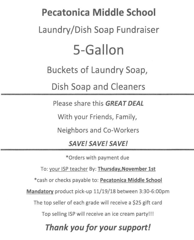 2018 Pecatonica Middle School Laundry/Dish Soap Fundraiser