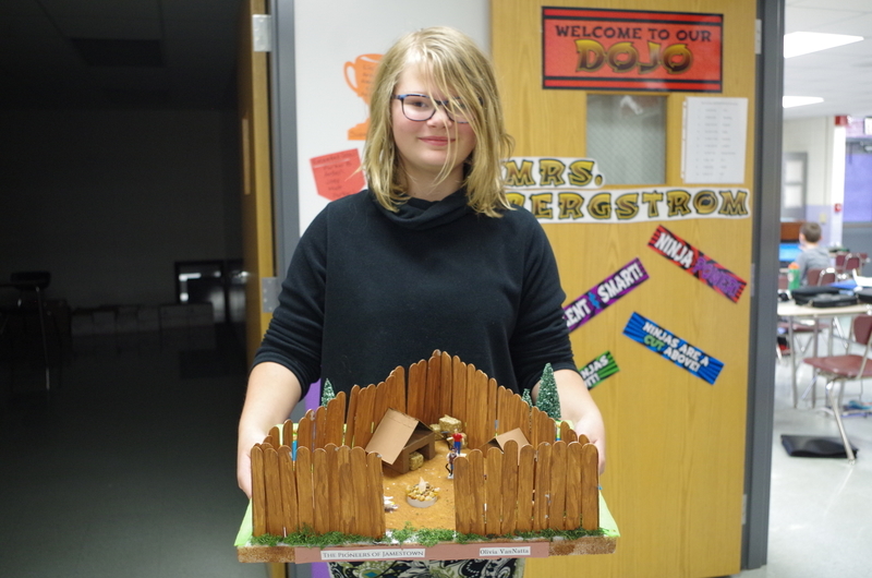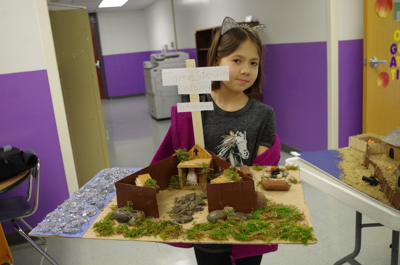 The 5th Graders made a replica of the Jamestown settlement in the Colony of Virginia. Jamestown was the first permanent English settlement in the Americas. It served as the capital of the colony of Virginia for 83 years, from 1616 until 1699.