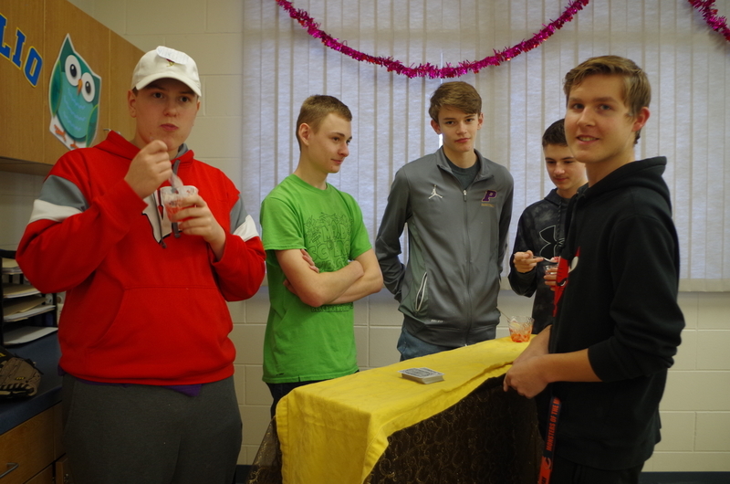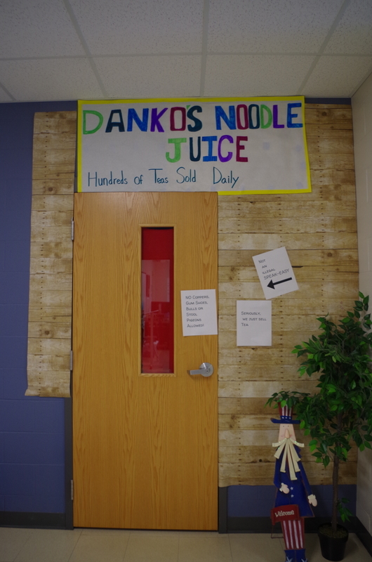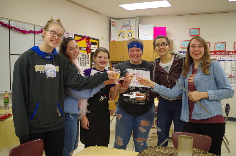 Mrs. Danko’s American History class is studying the 1920’s and Prohibition, and don’t tell anyone, but Mrs. Danko reenacted an illegal speak-easy for students this week. To get into the classroom you had to knock 3 times and then say, “The big cheese is here” which is really funny. Students dressed in famous characters of the 1920s such as Georgia O’Keeffe, Amelia Earhart, and Al Capone to name a few. Once in the classroom, the student’s enjoyed a “speak-easy” type of atmosphere with hor d’oeuvres, sparkling grape juice, gaming tables, and fancy fabric tablecloths for their desks. So after you read this just “Fuhgeddaboudit!”