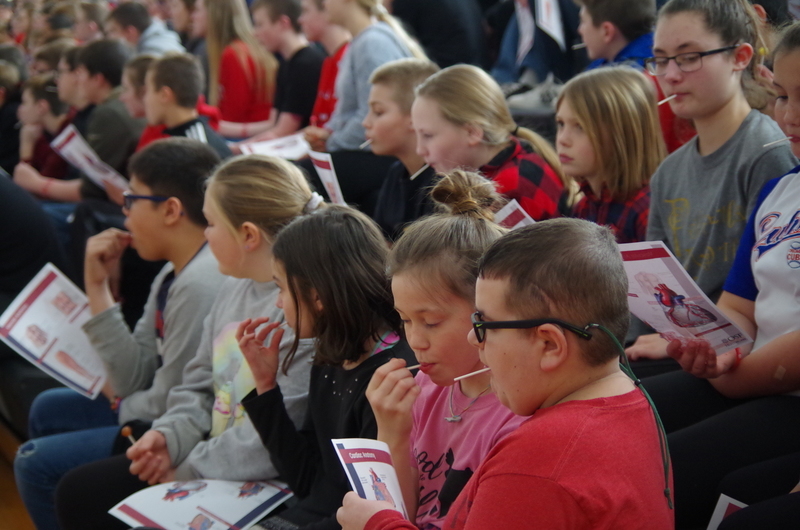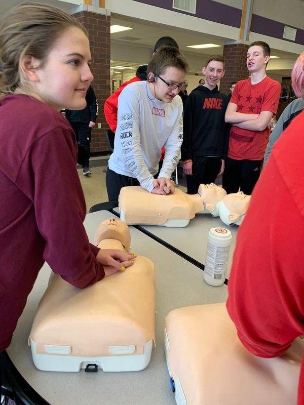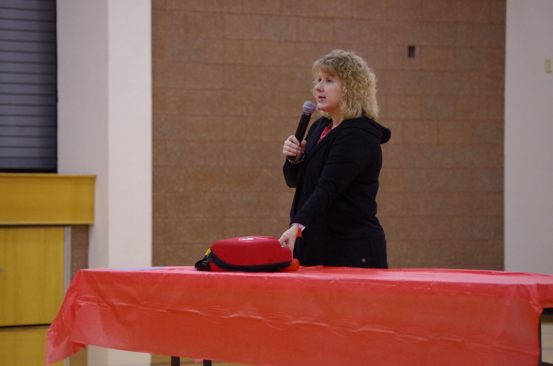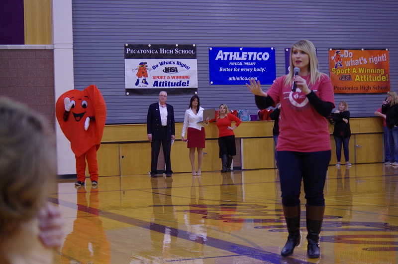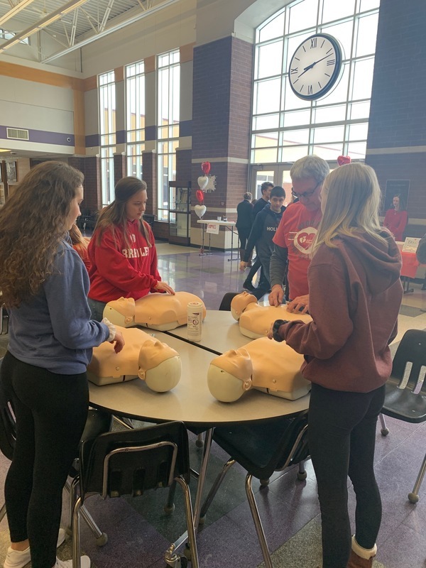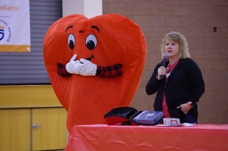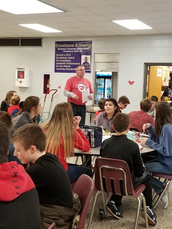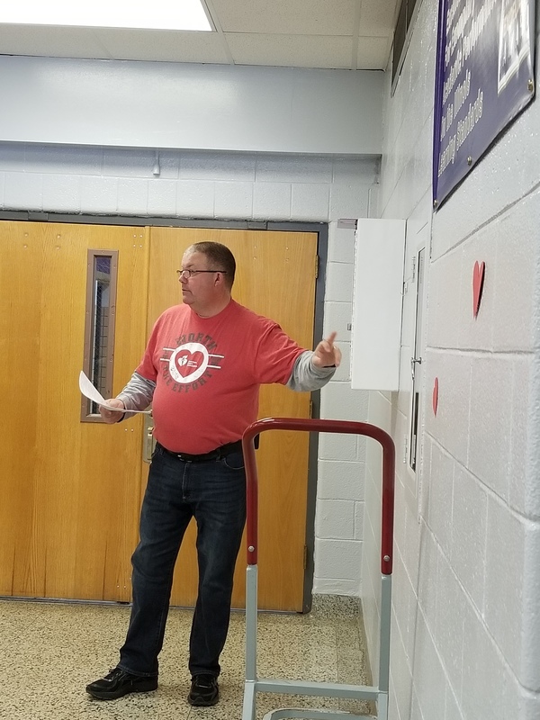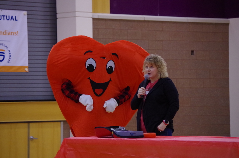 Many staff and students participated at all three buildings by wearing Red: The elementary school also watched heart healthy educational videos. The middle school principal, Mr. King, showed students the AED located in the cafeteria during lunches, hosted a special guest, Nancy Dagefoerder, APN, of OSF HealthCare Cardiovascular institute and played heart-themed games. The high school students held a bake sale and learned hands-only CPR during lunches. Special guests George and Mary Laman, Shondra McLarty from the American Heart Association and Andrea McGrew, #321’s nurse, spoke to high school students during an all school assembly. Hearty the heart mascot was there to join in the fun and heart health themed games. These simple actions can save a life...Call 911, tell someone to “Get the AED” and perform CPR.
