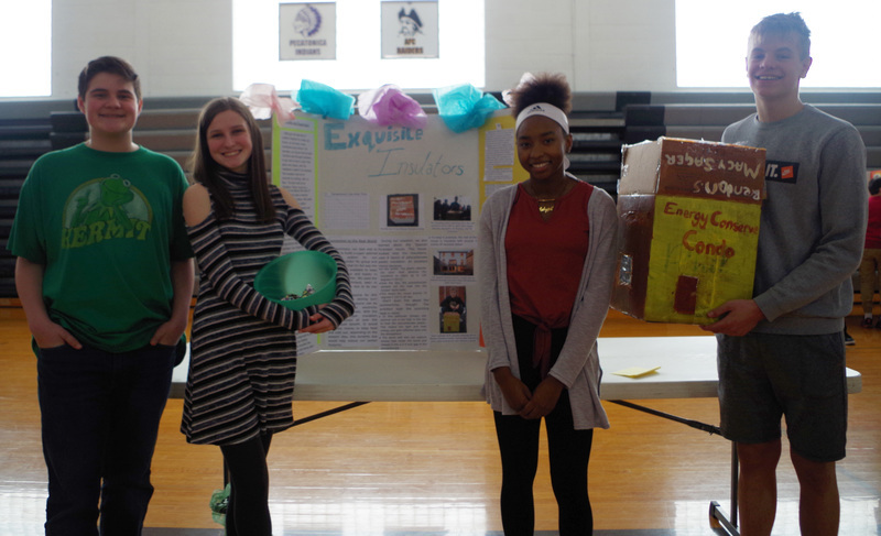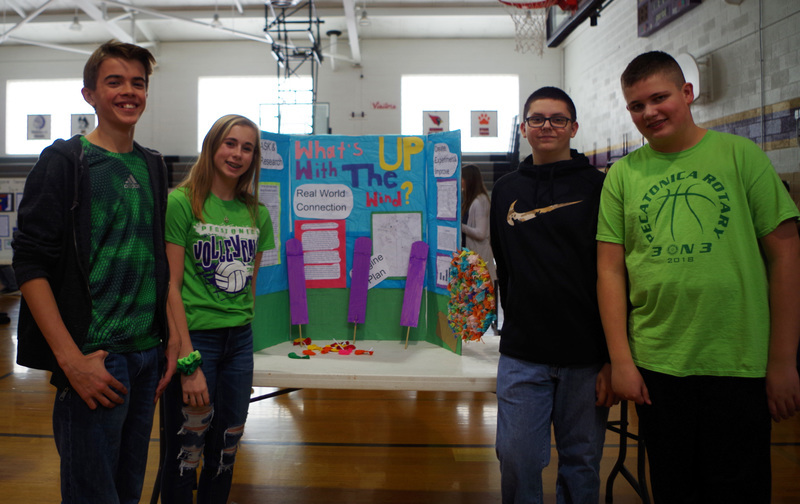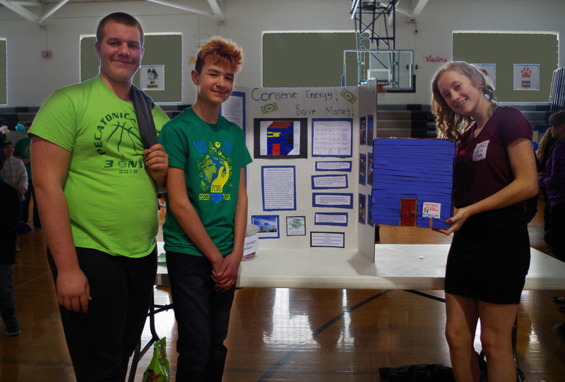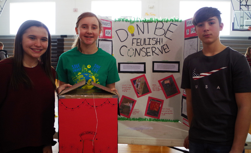 Middle school science students worked hard to prepare for the Energy Fair and Carnival held on Thursday, March 7, 2019. The 8th grade students teamed up to research, prepare and perform experiments on wind and food energy, and also construct energy efficient homes that were monitored outside to evaluate the home’s temperature and evaluate insulation materials. At the Energy Fair students displayed detailed presentation boards and were eager to explain their experiments and answer questions. The 7th Grade students prepared and ran a fun energy carnival for all to enjoy. It was great to learn from our Junior Scientists!