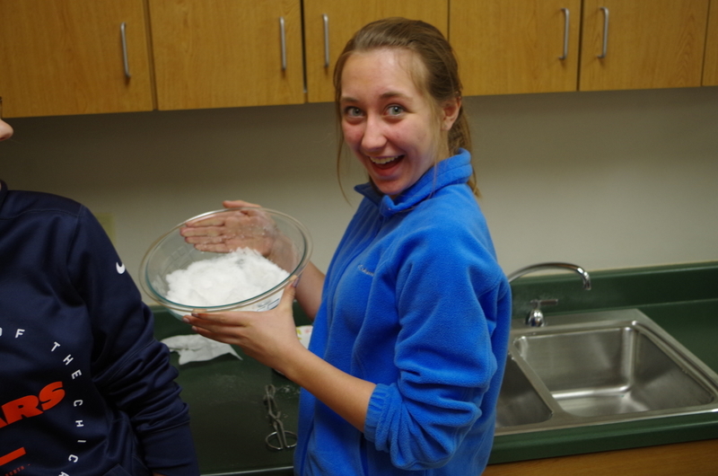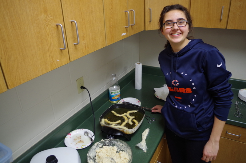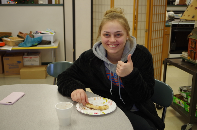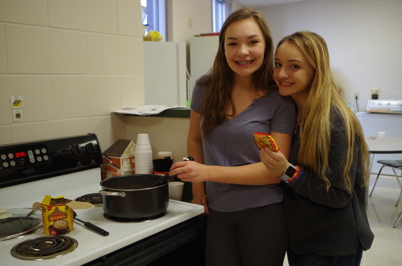 There was a pleasant aroma coming from the kitchen classroom on the West side of the high school on Wednesday, March 13. Senora Shrader’s Spanish Students were waiting patiently in line to enjoy Mexican hot chocolate (IBARRA) and Mexican fried dough (Churros). Two stations were set up; one for the drink and one for the sweet treat. Designated students stirred up the hot chocolate mix and water as other students made up batter from a boxed Churros mix. The Churros were fried, rolled in sugar and then sprinkled with cinnamon and served warm. All Spanish classes were able to experience a homemade authentic Mexican beverage and treat. Muy Bien! Muchas gracias!