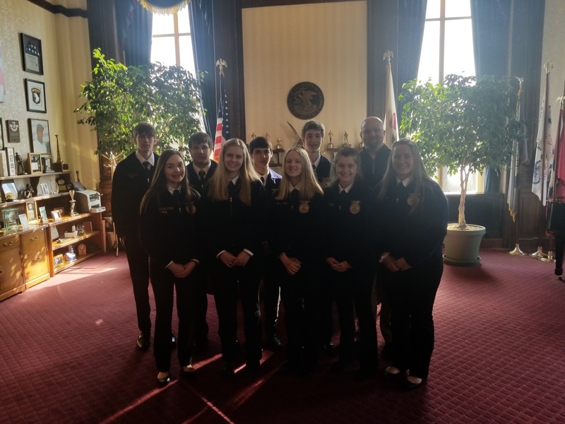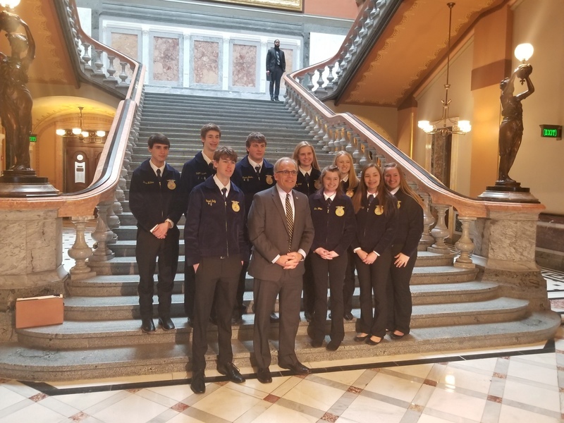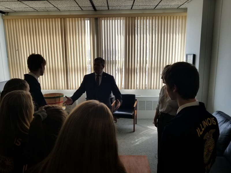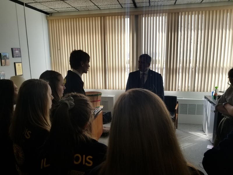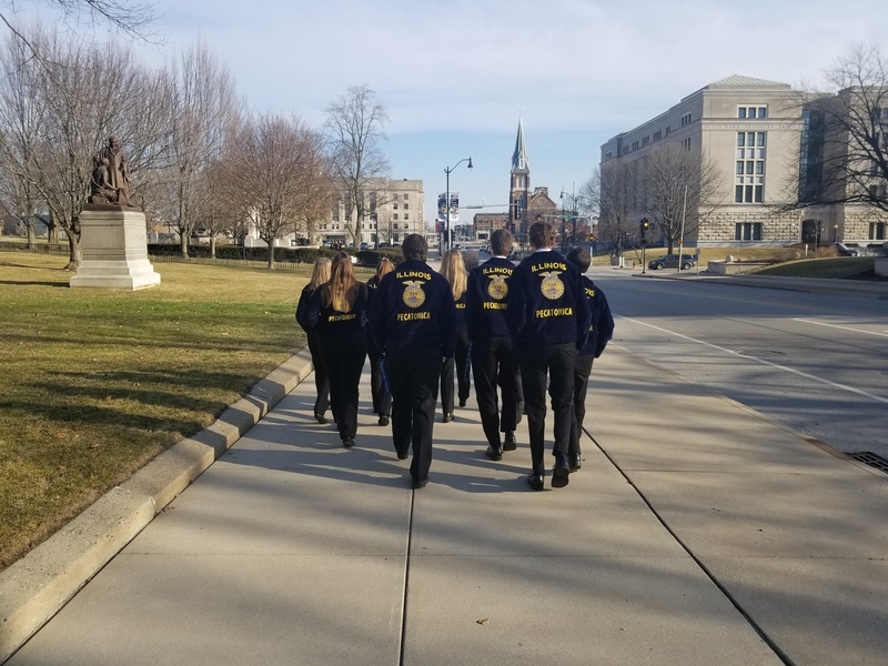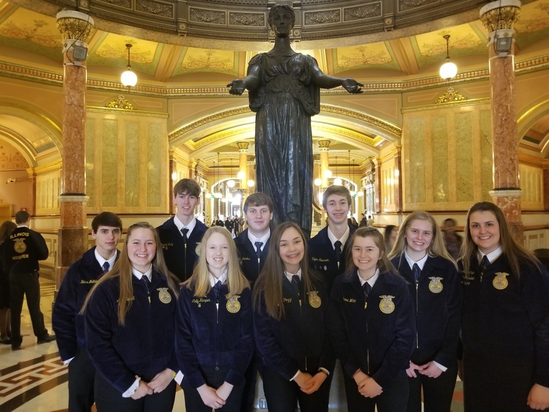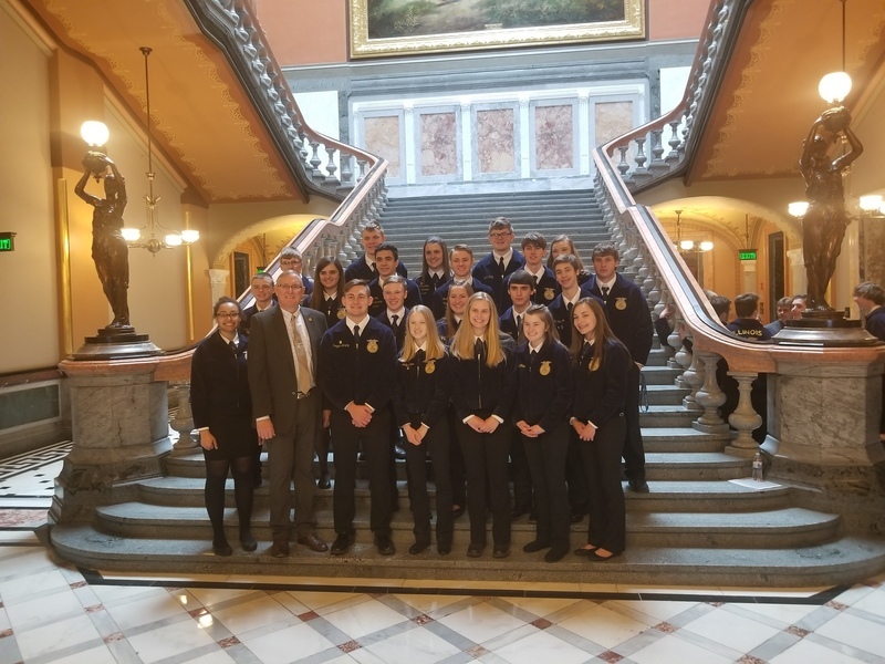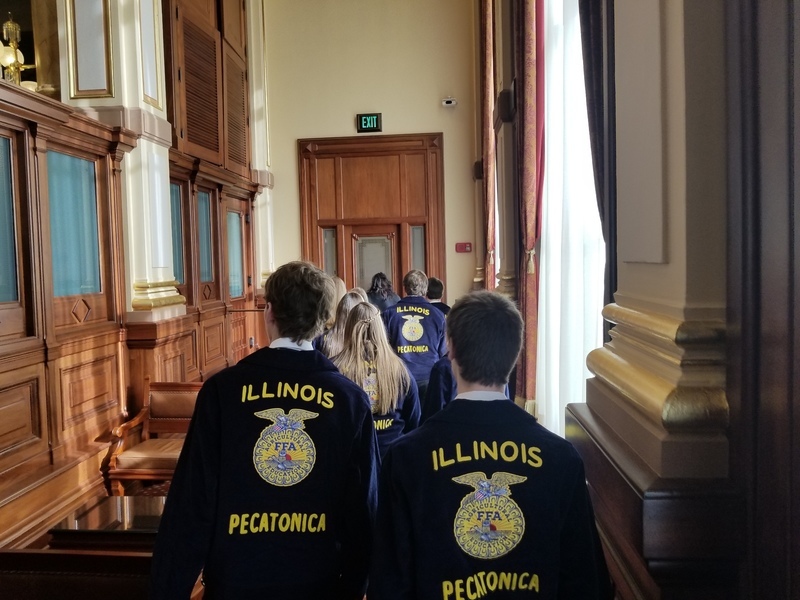 “The Illinois Agricultural Legislative Day, known as IALD, brings together farm, agricultural commodity organizations and other diverse agriculture interest groups to the state Capitol to speak to state lawmakers in Springfield.” Our FFA students were there to represent the Pecatonica High School. They met with FFA members, agriculture legislative representatives and contacts, saw Senator Syverson the Illinois State Senator for the 35th District, The Winnebago County Fair Queen Alexi Bladel, 10, of Rockford and State Representative for the 89th District, Andrew Chesney. Thank you for the photos Mr. Schultz.