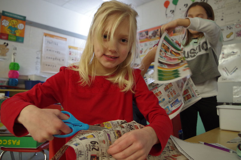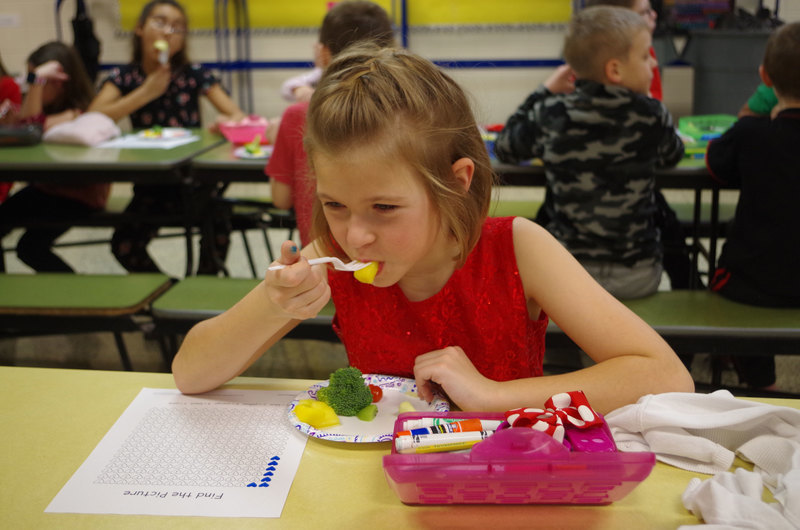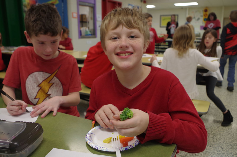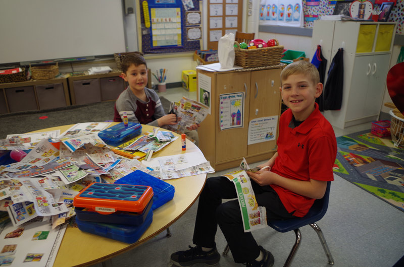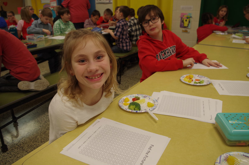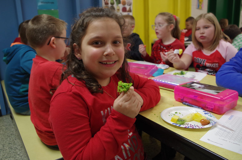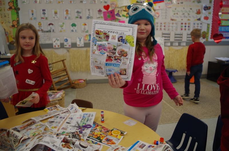 The Elementary School held Heart Healthy Rotations (students rotate from center to center) last Friday, February 7, 2020. The cafeteria was dishing out healthy food samples and students were encouraged to sample new fruits and vegetables. One center had students identifying and cutting out healthy foods from the newspaper to create a shopping list. Many students wore red as it was also “Red Out Day”.